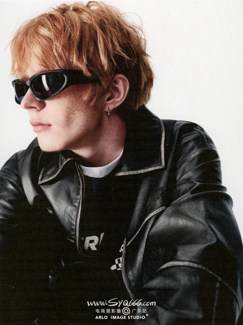 鬼马潮模|金发雀斑蓝眼+墨镜杀,把叛逆剪裁穿成皮肤,用鬼马灵气点燃潮酷,是品牌需要的「风格活标本」。” 既有韩火火式的先锋解构力,又有“少年敢玩敢野”的生命力,是潮牌秀场、街拍大片、品牌大片的“风格作弊器” 机车皮衣的叛逆剪裁、暗黑连帽的慵懒张力、金属链饰的机能锋芒,都能被他穿出“漫不经心的精心”,像把街头涂鸦、赛博朋克、复古滑板揉碎了重组在身上。