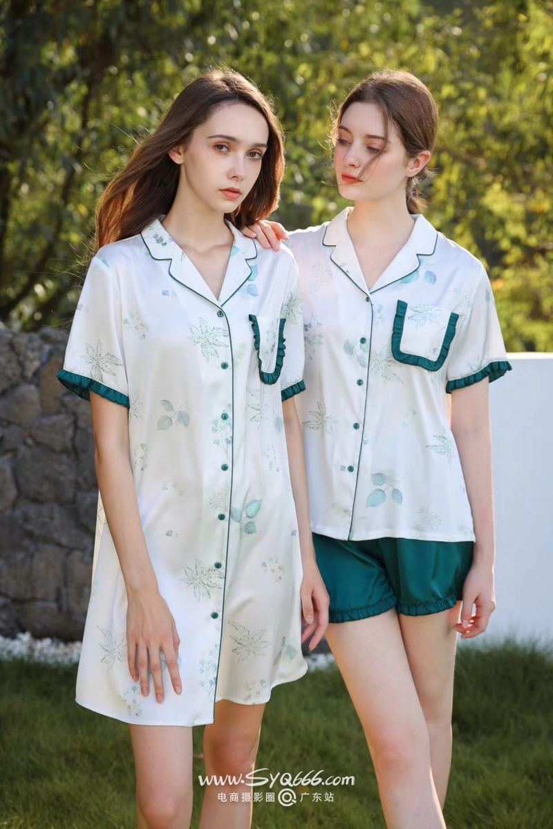 年轻外籍女模家居服外景拍摄